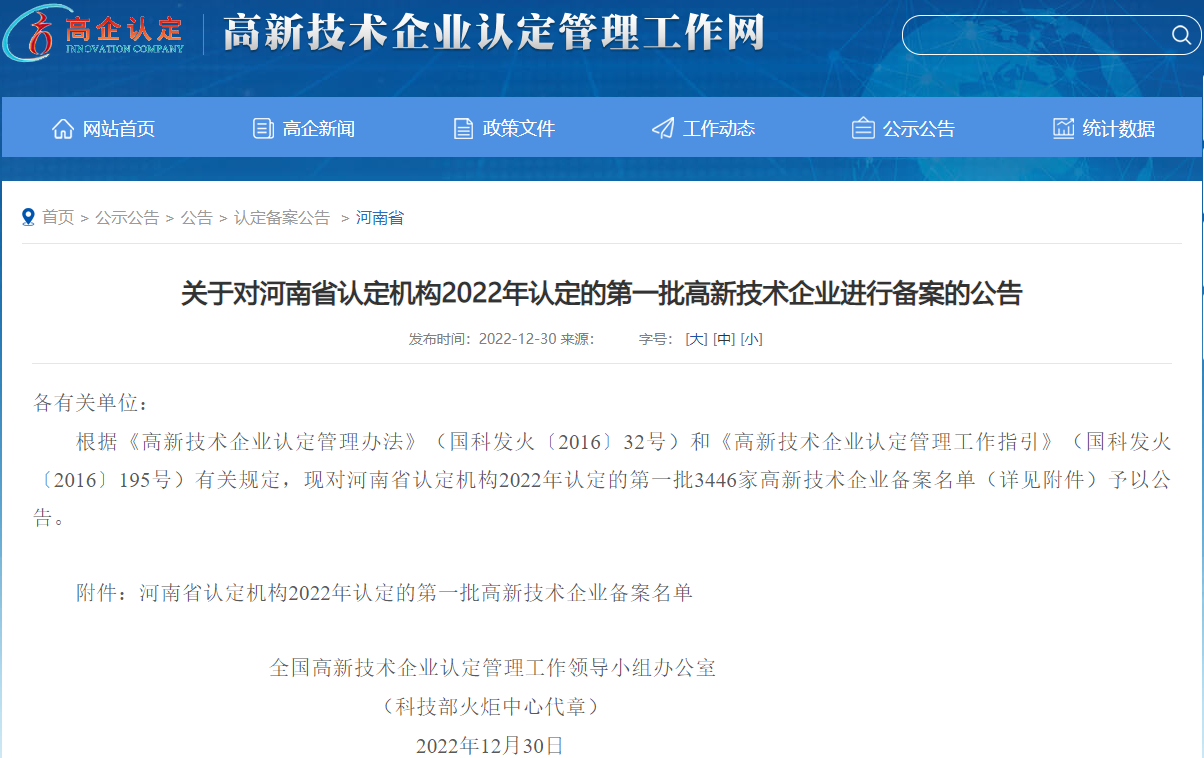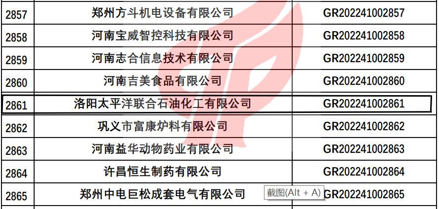 近日,河南省2022年第一批備案高新技術企業(yè)名單正式公告,洛陽太平洋聯(lián)合石油化工有限公司榮膺在列,光榮上榜!